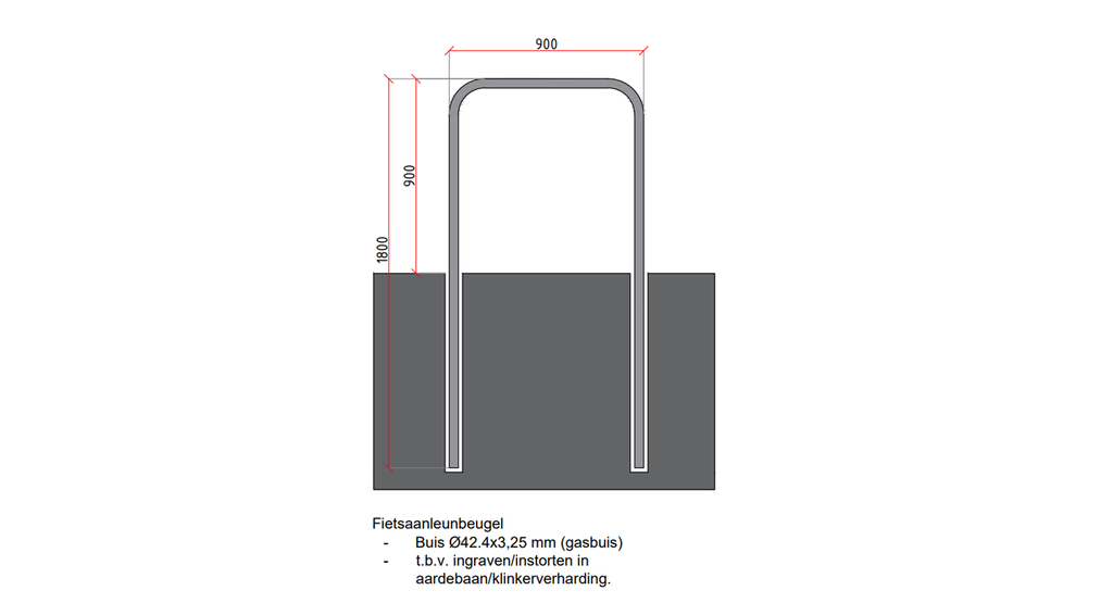 Fietsaanleunbeugel/fietsnietje ø 42,4x3,25-1800x900x1800 - Aardebaan