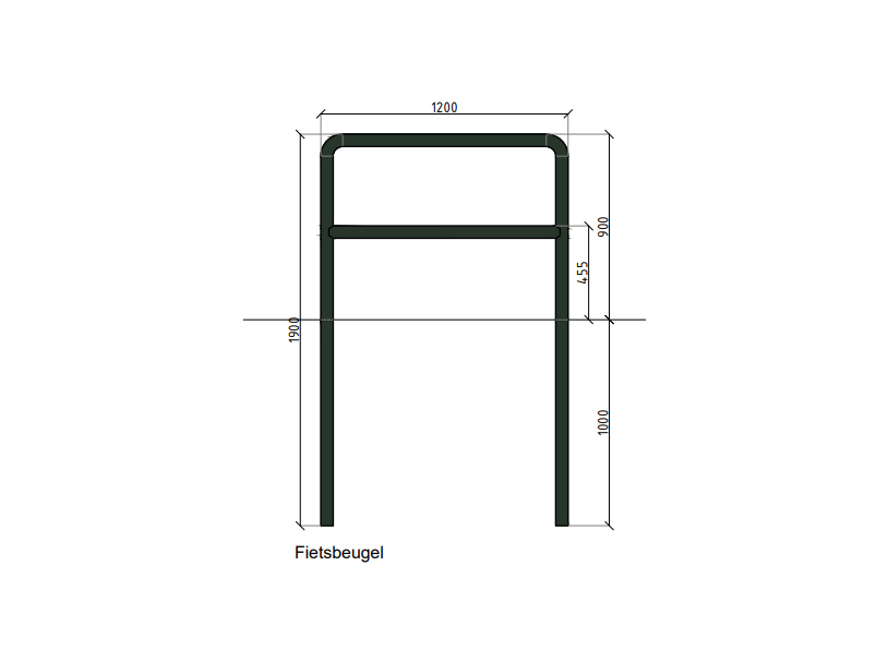 Fietsbeugel ø 60,3x2,9 -1900x1200x1900 - Aardebaan met tussenstang in RAL