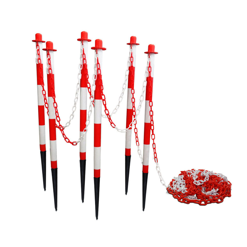 Kunststof kettingpalen rood-wit met grondpin (set van 6 palen)